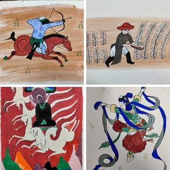 “这门课是人文、艺术与科技的结合”,张晖以制作模拟壁画这项实验为例,他说,实验中同学们根据古代壁画的传统制作工艺,从配制明胶溶液混合石膏粉制作白底层开始,再到选择临摹的壁画图案;从描线稿到矿物颜料着色,将跃动的线条变成生动的图形,在亲身实践中触摸古代绘画艺术的脉络,创造出独具特色的模拟壁画作品。