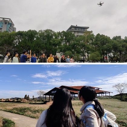 除了韩秀丽与潘慧敏老师,艺术与考古学院的旧石器考古专家陈虹老师和文物数字化专家郑霞老师也参与了授课,分别讲解显微镜观察和文物的三维扫描建模。曾在浙江省古建筑设计研究院工作多年、具有丰富古建筑测绘经验的钱天华老师,则给同学们详细示范无人机航拍和倾斜摄影的操作。