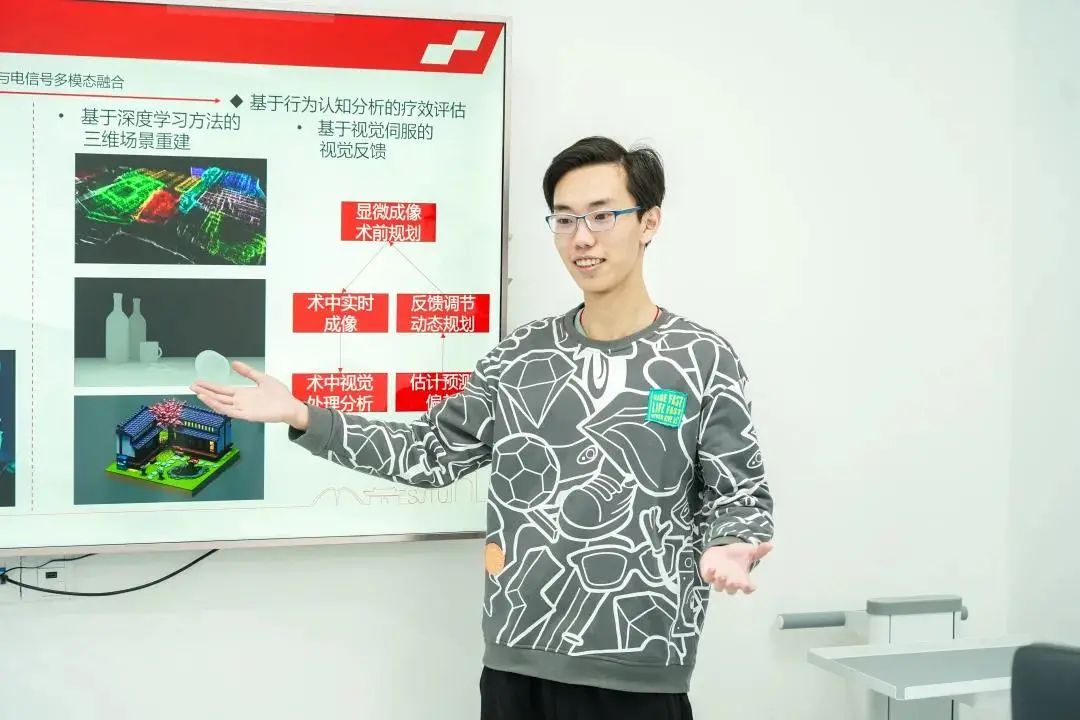 依托于学院提供的全方位的科研平台,他从大一下学期就加入了学院的实验室进行早期的科研探索,并找寻适合自己的研究方向。一次偶然的机会,他在学院赵俊老师开设的《生物医学工程导论》课上接触到了医疗机器人这样一个全新的研究领域,医疗机器人作为人工智能时代在医疗领域应用的产物,能够最大程度地帮助医生进行各种的医疗诊断和辅助治疗。在兴趣的驱动下,他最终在大三上学期加入了医疗机器人研究院,找到了适合自己的科研之路,并开始在社交机器人领域展开了研究,为帮助阿尔兹海默症患者尽可能恢复正常的生活提供社交领域的康复辅助,并通过行为识别与情感分析更好的了解患者当前的认知状态。在大三暑假的保研夏令营中,他凭借着出色的表现以面试第一名的成绩直博本学院。两个月前,他成功申请了致远荣誉博士计划,即将跟随杨广中老师、郭遥老师继续从事医疗机器人相关领域的科学研究。未来五年,他将铭记生医工人肩上的重担,为推动医工交叉、国际化、临床转化的发展,为推动医疗机器人领域的不断前进贡献属于自己的青春力量。