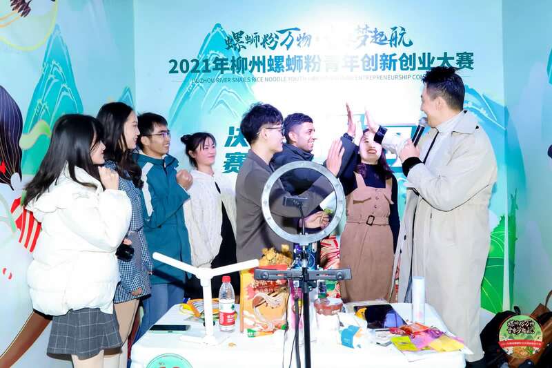 柳州螺蛳粉青年网络营销大赛决赛同时拉开帷幕,在校大学生组以及社会青年组共25个团队在各自的直播间里开展直播,评委在现场逐一对选手的直播场景、互动能力、产品知识、主播形象、直播话术、品牌宣传等进行打分评价,赛后结合选手带货销售总额得分,最终评选出各相关奖项名单。