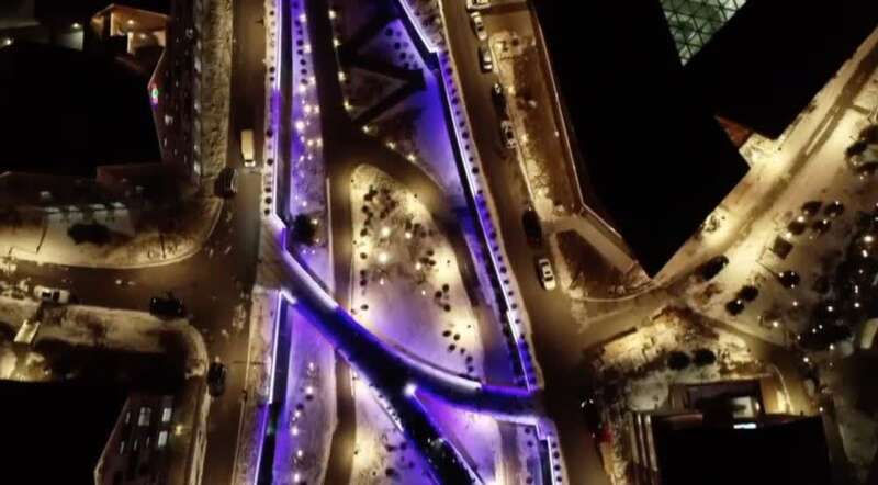 12月21日,张家口冬奥村内建筑开灯迎接测试。新华社记者杨帆摄