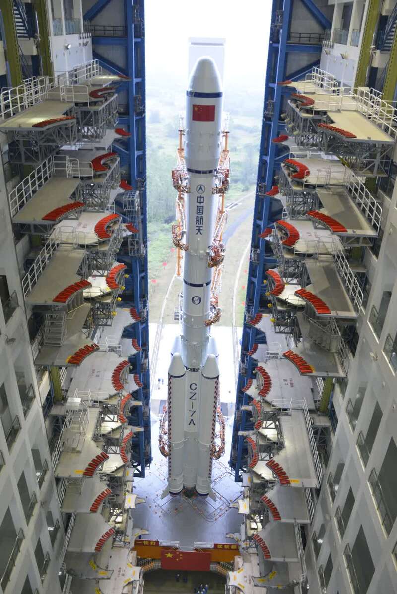 魏远明说,由于“双星”任务需要,长征七号改遥三火箭全长达60.7米,比年初发射的长征七号改遥二火箭高出了0.6米,是我国目前在飞的最高火箭。