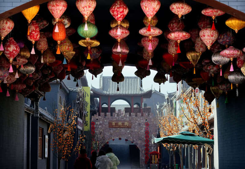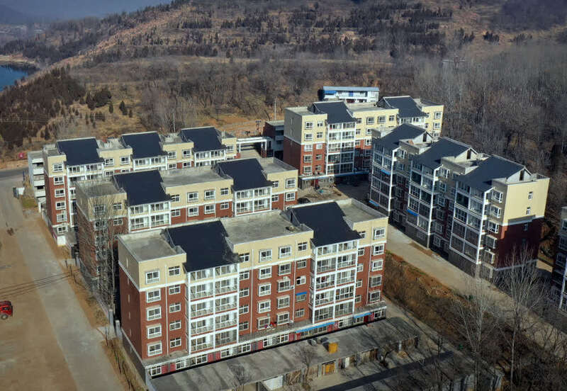 ↑这是伏羲山旅游区中原豫西抗日纪念园旁的田种湾社区(12月22日摄)。2015年,田种湾村整体搬迁到由伏羲山旅游区出资建设的田种湾社区,并在村旧址恢复修建了中原豫西抗日纪念园景区。