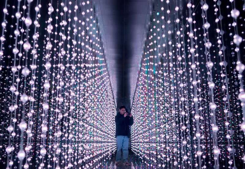 ↑12月22日,游客在河南新密市伏羲山旅游区的云上艺术馆内拍照。