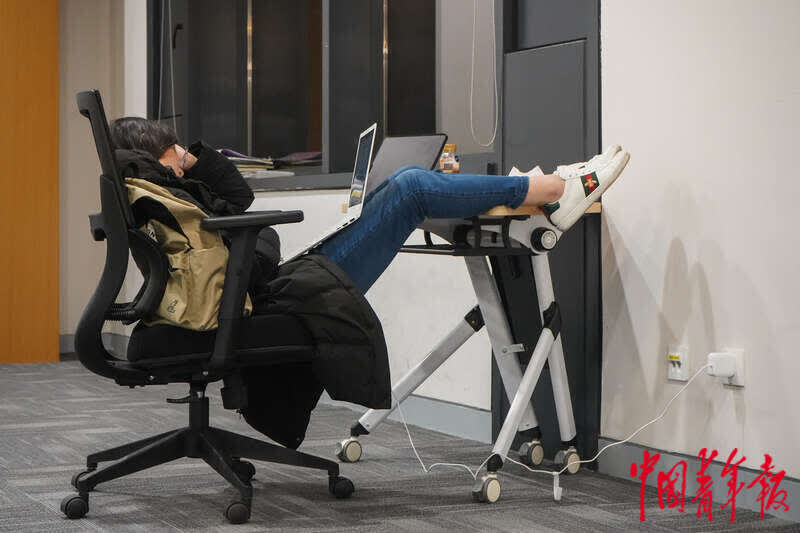 12月22日凌晨,北京,中国人民大学立德楼内,一名同学靠在窗边的椅子上休息。距离考研越来越近,多数考研人会奋战到深夜。张未/摄