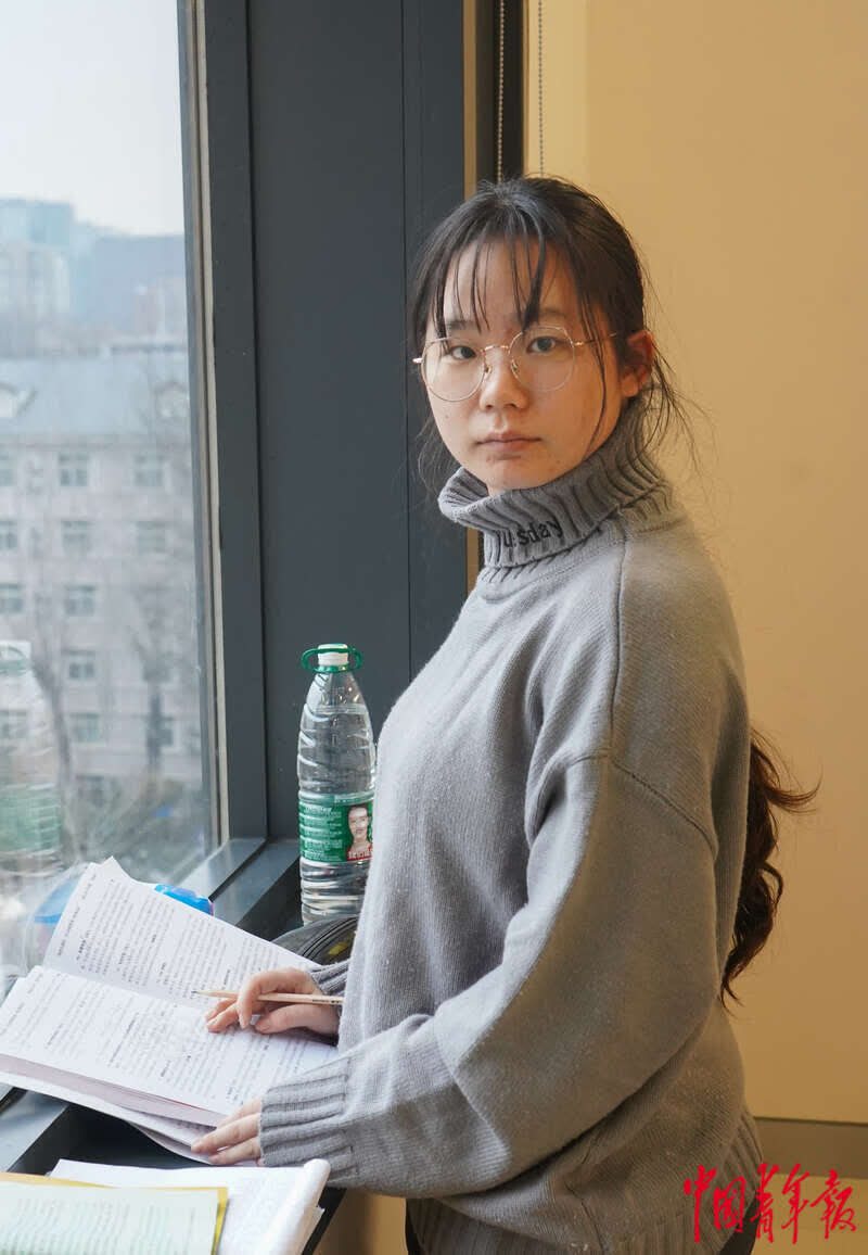 12月23日,北京,中国人民大学立德楼内,数学学院大四学生张悦在窗边背书,她打算考金融专业的硕士,通过系统学习,以便未来进入金融行业工作。她每天在这里复习10个小时以上, “白天背书累了可以看看来来往往的同学,给自己勇气。晚上可以看到学校里的灯光,还有玻璃上映出的自己的倒影,感觉就像有人陪着自己一起学习一样。”虽然本科的数学专业与金融学有许多相似之处,但张悦认为自己在思维体系上与金融专业的同学还有一定差距,她也做好了再考一年的准备。张未/摄