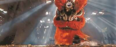 《雄狮少年》的最大特点,或许是在无厘头里注入了更为强大的现实精神。人物不是无牵无挂的英雄,而是背负了沉重的家庭负担,天生多了一副沉重的枷锁。他所追求的不是技艺的臻至化境,而是如何在生活面前展现出如雄狮般的勇毅与力量,用奇迹唤醒沉睡的父亲。这种力量,不是来自类似“如来神掌”这样的天外神力,而是来自父母、来自敲鼓为他送行的师徒、来自同村族人跳入水中的奋力支撑。造梦的人已经那么多了,留给他们好了,而我只想跃向那看似不能挑战、不可逾越的擎天柱,这不是英雄梦想释放的酒神狂欢,而是个体即使认清自己的渺小卑微后,却依然无惧成败、无惧鲜血,吼出内心威猛刚勇的雄狮。