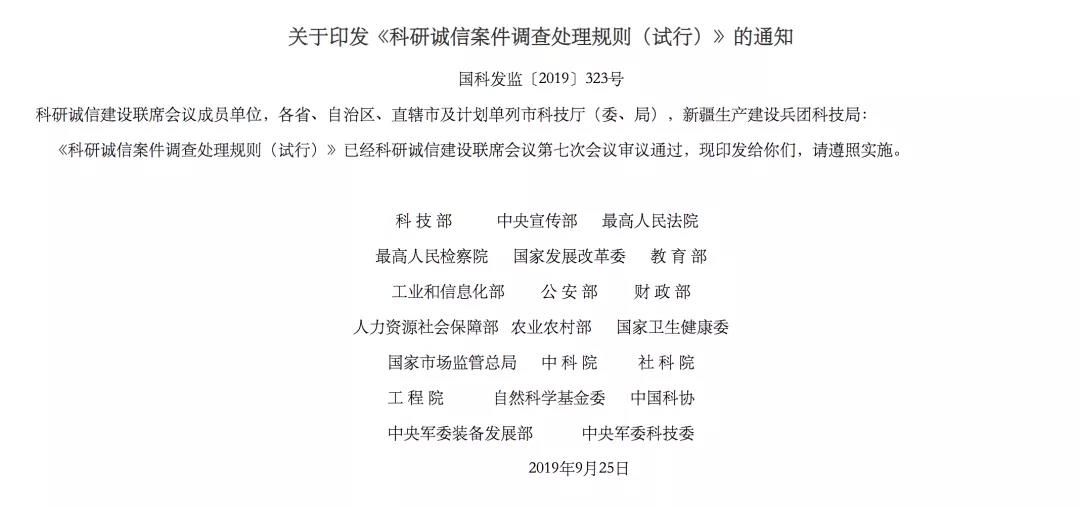 早在2019年10月,科技部等20个部门联合发布《科研诚信案件调查处理规则(试行)》,对案件调查流程及处理措施作出明确规定,买卖、代写论文被列入科研失信行为中。