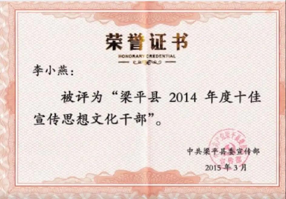 2011年3月由梁平县委办给予梁平县党委系统信息先进工作者荣誉称号