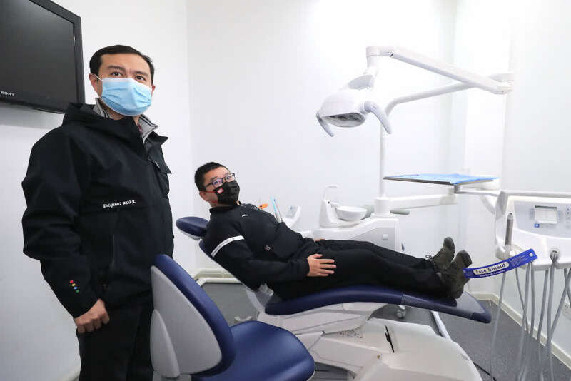 2022年北京冬奥会女子冰球和部分男子冰球比赛将在五棵松体育中心举行,在距离冰球场地仅35米处,有一个经过特别设计的牙科诊室,作为冬奥会医疗保障服务的一部分,正在静待冬奥会开幕。