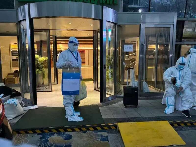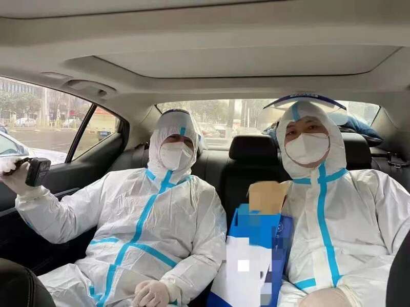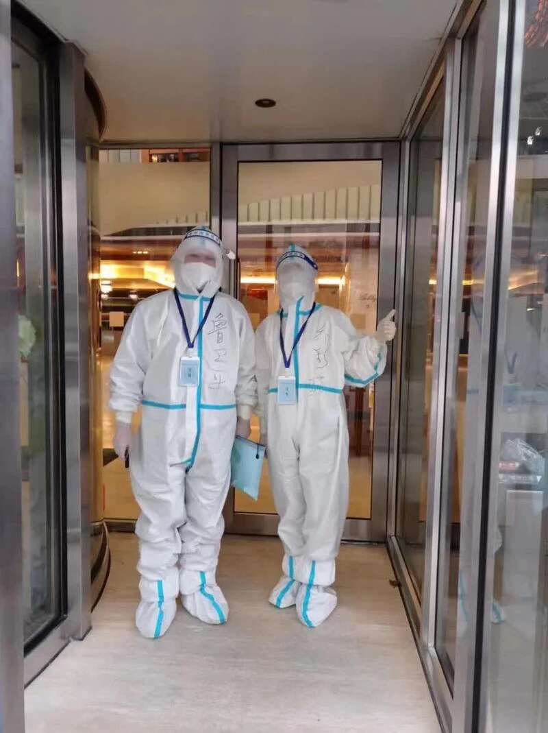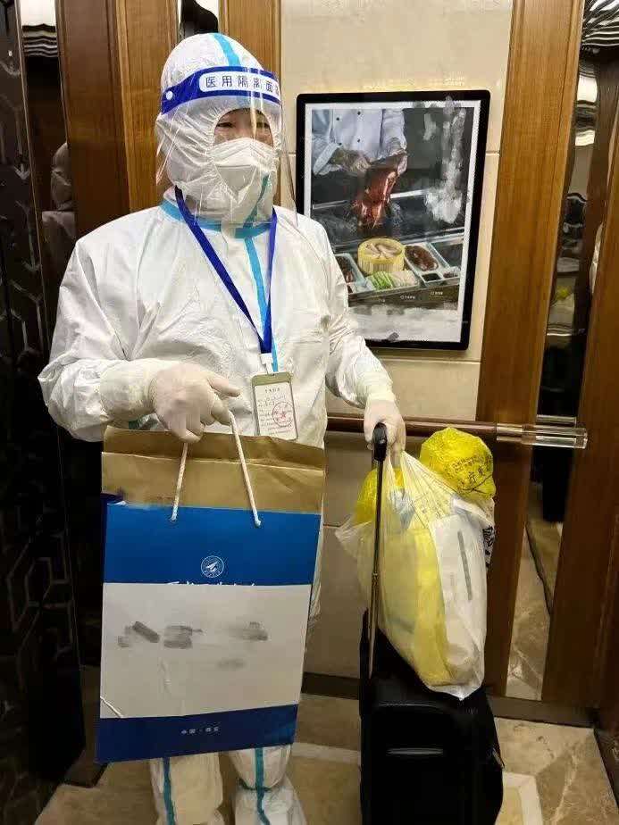 “送考”老师们两人一组,全程录像。经过20分钟车程,高新区绿地假日酒店的送考老师鲁卫平和乔彩燕带着试卷和隔离用品按原计划抵达,这里有一位集中隔离的B类密接考生正等着他们。