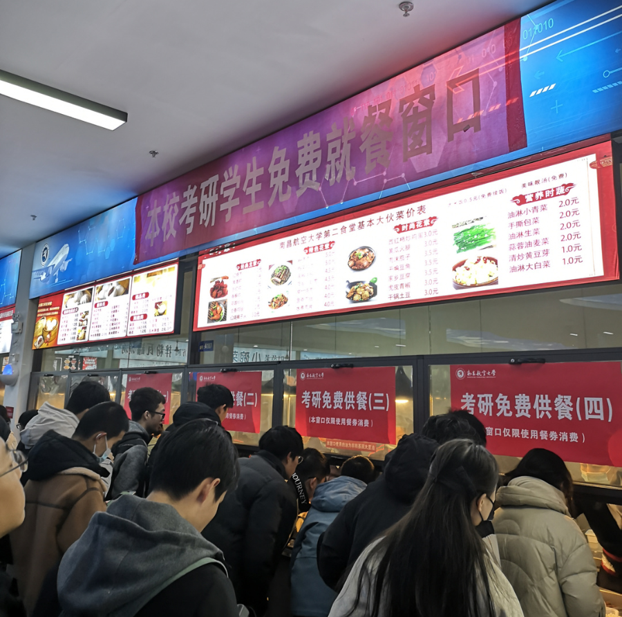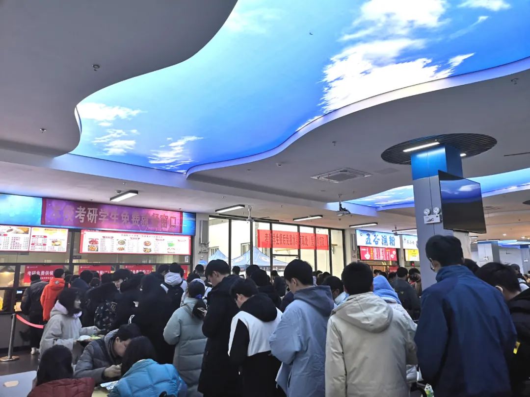 12月25日,全国硕士研究生招生考试的第一天,随着交卷铃声响起,结束了第一场考试的南航考生们陆续前往学生二食堂就餐。他们手持学校发放的免费用餐券,来到档口选取自己喜欢的午餐。土豆烧牛腩、椒盐基围虾、红烧鸡腿、萍乡小炒肉、韭黄炒蛋、家乡豆腐、油淋菜心……各色菜肴琳琅满目,在满足口味的同时,更有荤素搭配出营养的良苦用心。