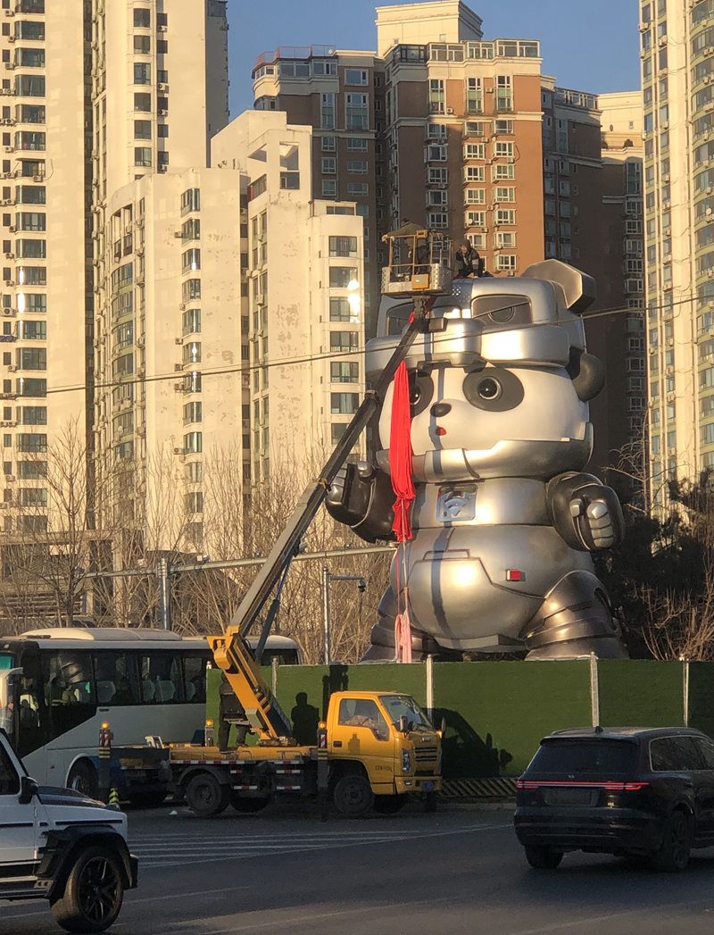 北京望京南地铁站附近大熊猫建筑换新