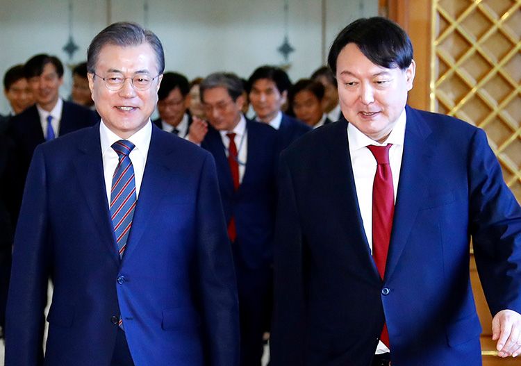 文在寅和尹锡悦。澎湃影像 资料图