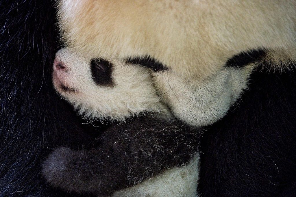 当地时间2021年9月30日,法国博瓦尔动物园,实拍降生不久的熊猫宝宝。这两只幼崽出生于2021年8月2日,现在体重超过2800克。