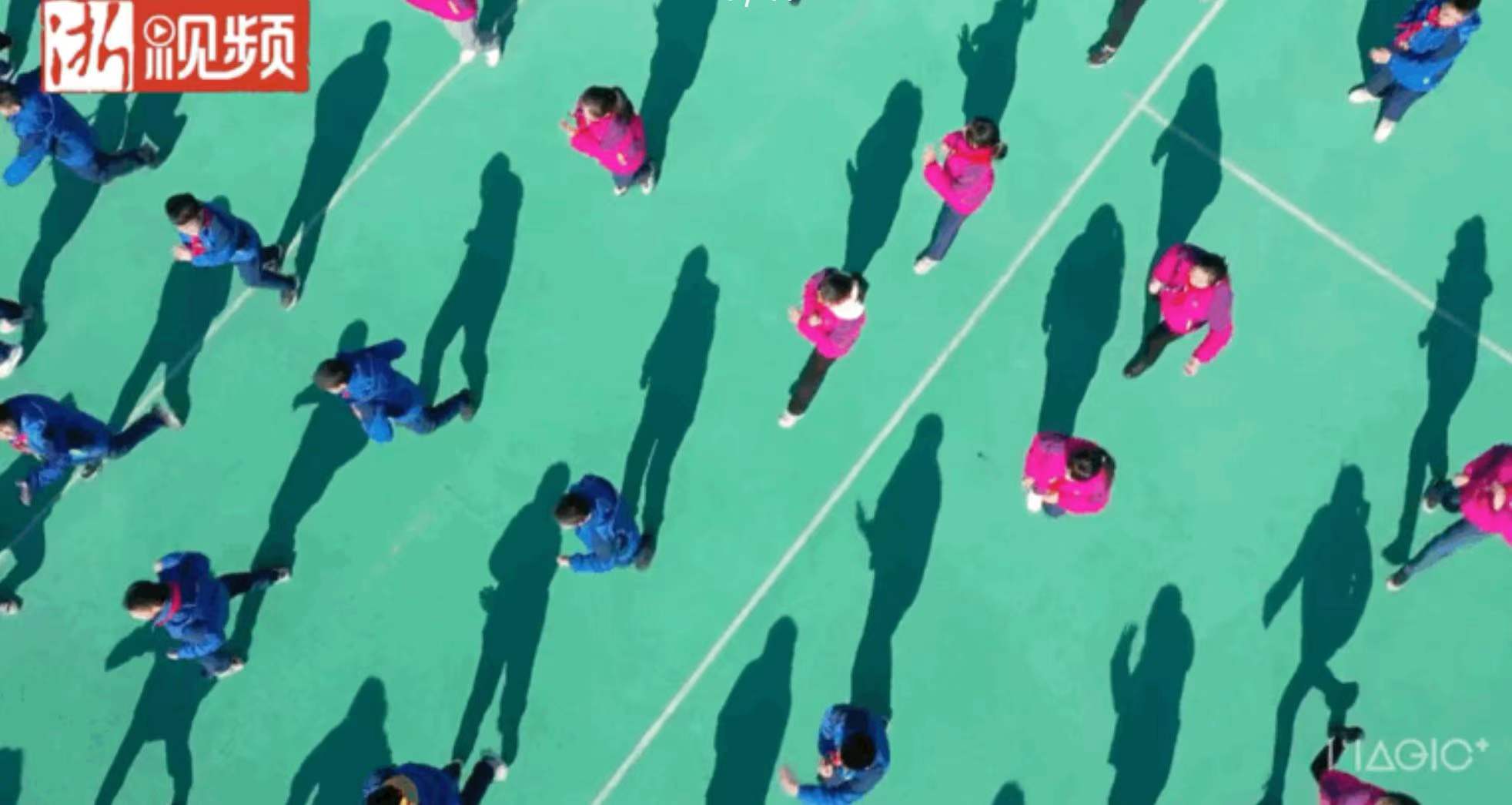 300余名小学生摆好队型,齐练武术