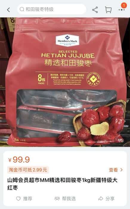 目前,在其自营电商平台山姆APP进行搜索,预选阶段可看到“新疆哈密瓜”“新疆灰枣”等结果,但无法实际找到商品。在阜石路门店内的鲜果区,哈密瓜的产地一栏仍有“新疆”这一选项,但现存货架商品全部来自海南。干果区内也找不到此前Member's Mark的热销产品“若羌灰枣”“和田骏枣”,与之包装相似的另一款灰枣产自深圳,一款骏枣产自宁夏中卫。