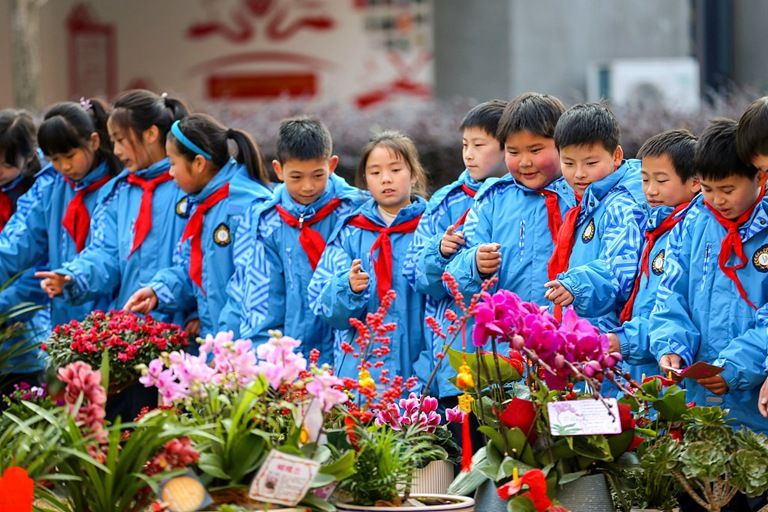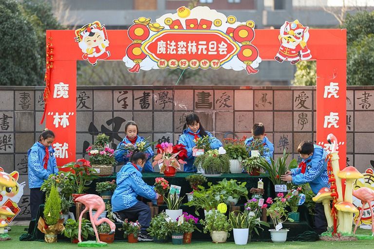 12月29日,浙江省湖州市长兴县第二实验小学举办“校园花博会迎新年”主题花卉展,1800多盆学生平日养护的花卉给校园增添了喜庆的氛围。