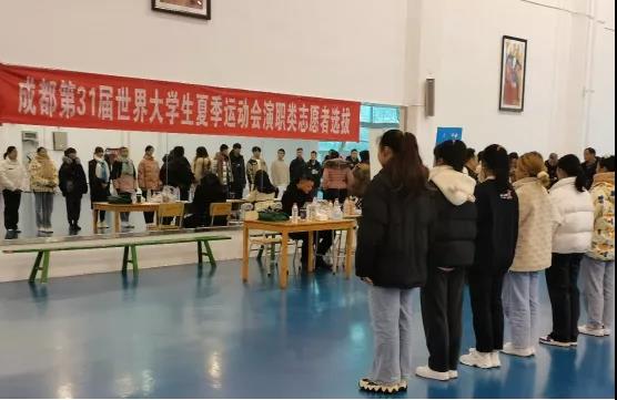 在12月17日、12月23日、12月28日我校分别开展了大运开闭幕式相关节目演职类志愿者的面试选拔工作。志愿者候选人来自舞蹈学院、体育学院、音乐学院、服装与设计艺术学院,累计参与面试达上千人次。在选拔过程中,各院学子表现出了极高的综合素质。他们用扎实的表演基础、自然从容的现场表现,展现了川师学子昂扬的青春风采与专业能力,为各节目导演组留下了深刻的印象。入选演职类志愿者的同学们将会参与到大运会开幕式相关节目与环节,在明年夏天走上世界的舞台。