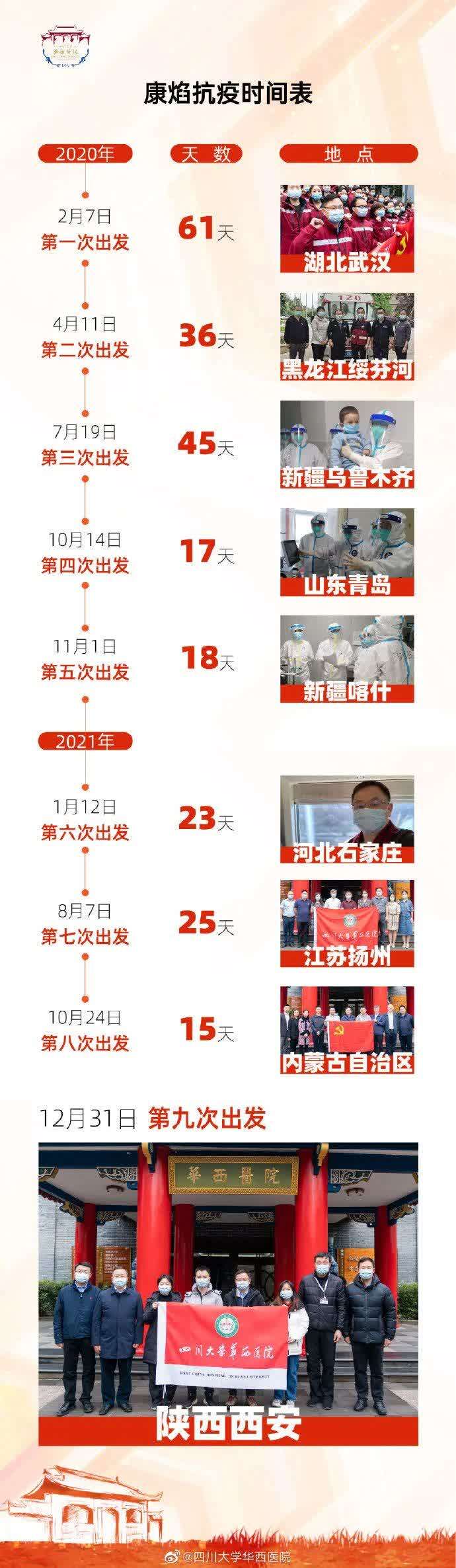 据了解,这也是继12月29日华西感控专家乔甫赴西安后,华西医院支援西安新冠肺炎疫情防控派出的第二支队伍。