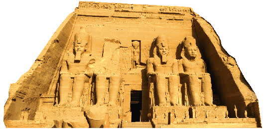 ◤ 拉美西斯二世神庙。1964年-1968年,为了免遭因建造阿斯旺水坝而上涨的尼罗河水淹没,在联合国教科文组织主持下,神庙被切割成块,分别编号,在离原址不远、地势较高的地方拼合还原。