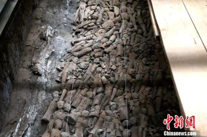 江村大墓外藏坑内藏有大量陶俑。中新社记者 张远 摄