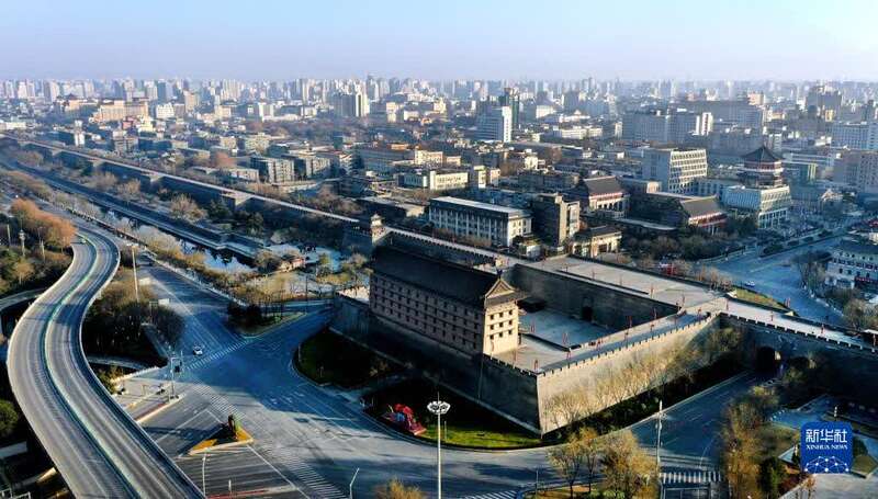 1月1日拍摄的西安市永宁门一带(无人机照片)。