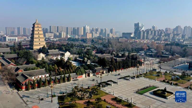 1月1日拍摄的西安市大雁塔南广场(无人机照片)。