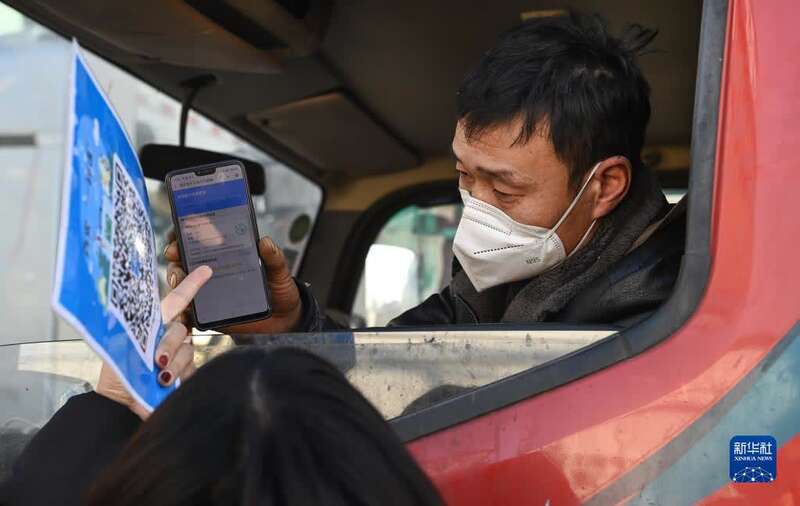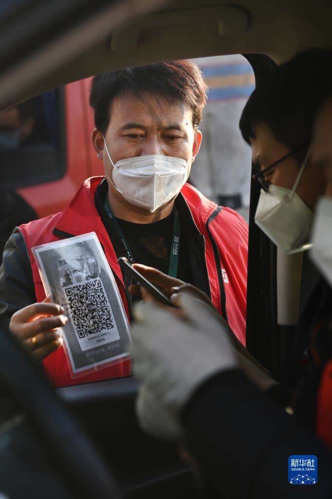 1月1日,西安一农产品物资中心员工查验装运司机的核酸码。