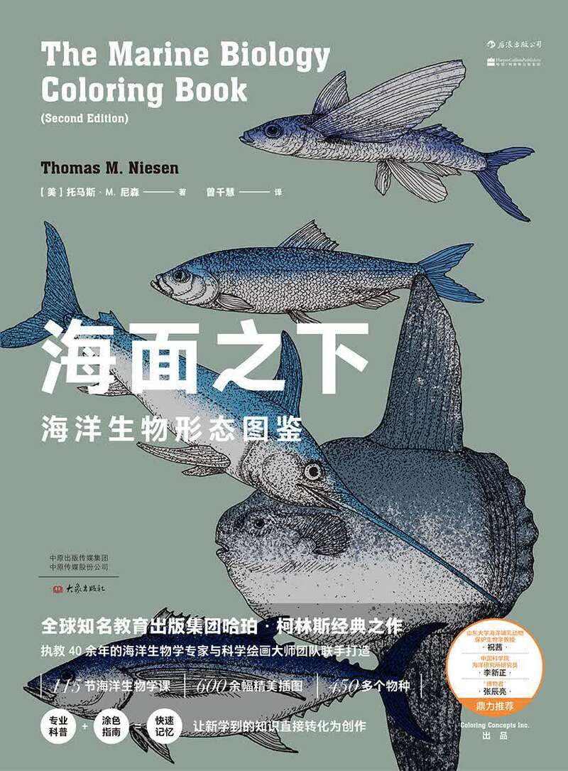 推荐语:这本书说是一本海洋生物学家与科学插画大师的跨界之作——一本海洋生物填色书,其实看了之后就会发现不填色也完全没有影响,填色的设计只是增加一些互动性,帮助记忆理解,书本质上还是一本挺好的海洋生物教材。主文部分非常好,海洋不同环境的分类,不同海洋环境中有哪些不同生物,不同海洋无脊椎动物的发育过程都图文并茂,一目了然,干货满满。图片是示意图风格,但是已经足够用了,同类专题目前还没见到有第二本。翻译也很专业、精准。