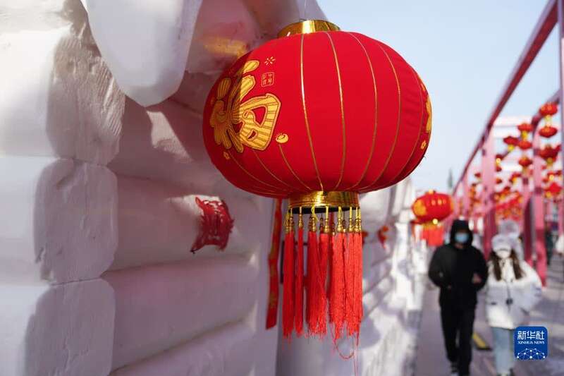 1月1日,市民从哈尔滨市防洪纪念塔广场附近的一处雪屋旁经过。