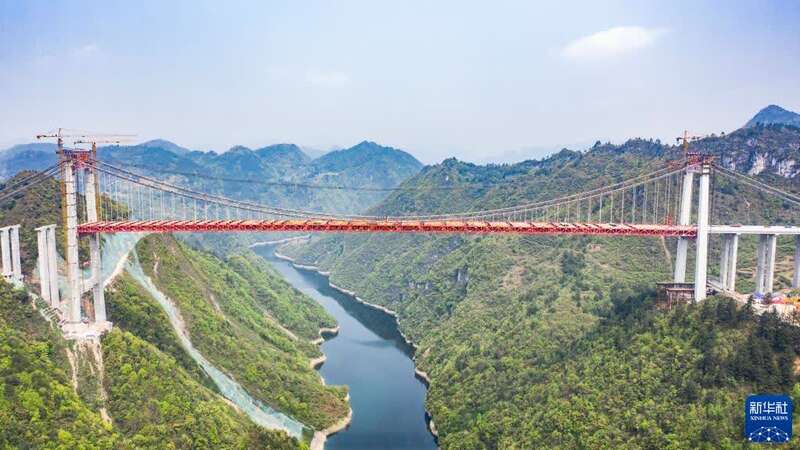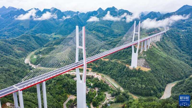 车辆行驶在贵州都匀至安顺高速公路惠水大桥上(2021年6月28日摄,无人机照片)。