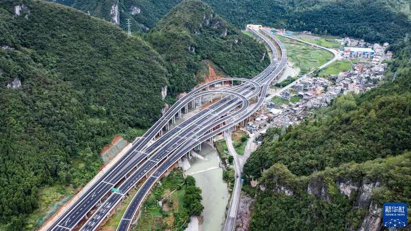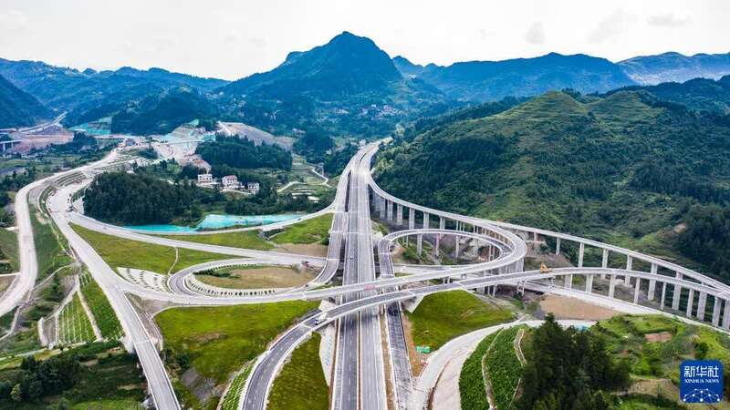 这是贵州石阡至玉屏高速公路花桥互通(2021年6月17日摄,无人机照片)。
