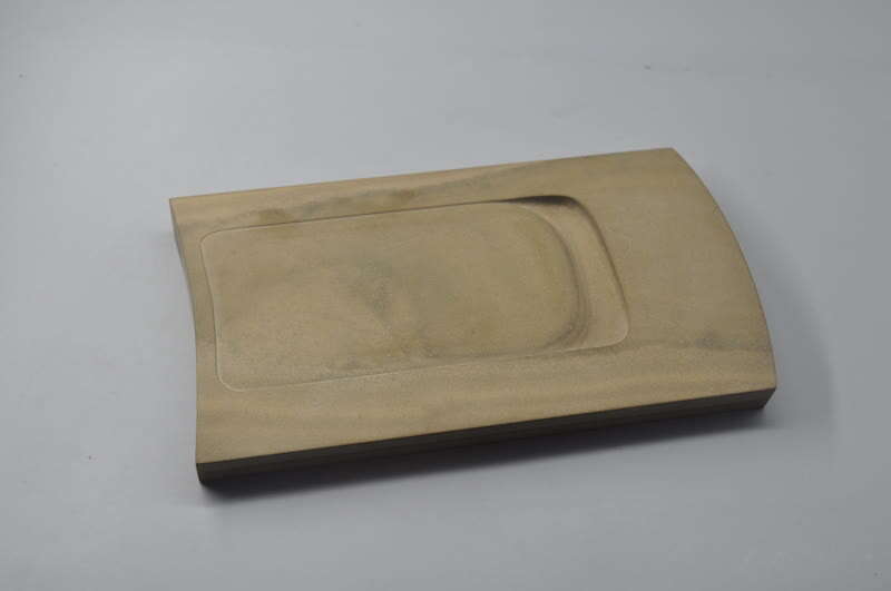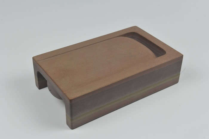 蔡春生:两千年多年来,砚的美是有规律的。古砚的高度、比例、厚度、线条的处理方式,以及砚的各个部位,包括砚池的大小深度等都是有讲究的。父辈们过去做的砚,有着零碎的规律,有些是对的,有些是错的,或者说并不全面,不深刻的。如一方“太史砚”,砚身长度、高度、边线的宽度、砚池的深度都有讲究。七十年代时,人们做这一款式的时候,认为把砚池开得大一些会比较实用,但是其实砚池一大,整个器物的结构就松掉了,失去美感。我们是从大量的古砚中,从更好的砚中去摸索规律,吸取经验。