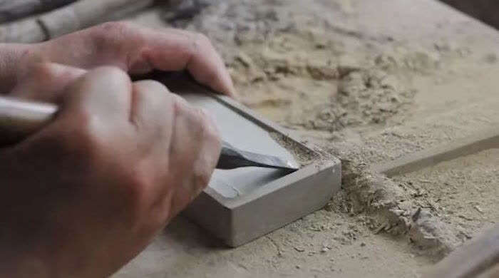 在澄泥石刻中,核心技艺便是苏作砚雕。自古以来,吴地的先人便因材施艺,取澄泥石制砚,逐渐形成古朴素雅之风。而在当代,起源于砚雕的澄泥石刻又衍生出了石壶、文房摆件等,并在2007年被列入江苏省级非遗名录。