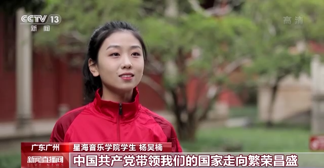 星海音乐学院学生 杨昊楠:100年来,中国共产党带领我们的国家走向繁荣昌盛,是党和国家带领我们战胜困难,共渡难关。作为一名中国人,我感觉到非常有安全感。