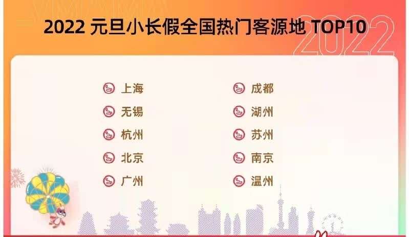 1月3日,驴妈妈、携程、同程、马蜂窝等多家在线旅游机构发布的假期出游总结报告显示,本地游、省内游、周边游成为疫情常态化防控下的主流出行方式,占比超过八成。短途冰雪游更是今年元旦小长假最热出游主题,全国多地的滑雪景区都迎来组团出游的大量游客。从客源地来看,上海、无锡、杭州、北京、广州、成都、湖州、苏州、南京、温州位居元旦小长假全国热门出发地TOP10。