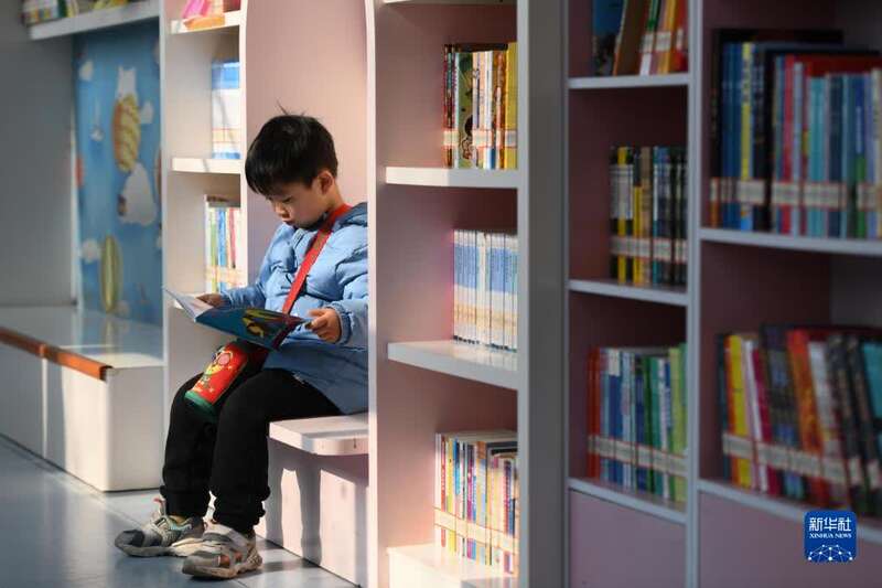 1月2日,一名小朋友在合肥市图书馆悦书房看书。
