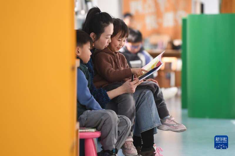 1月2日,家长和小朋友在合肥市图书馆悦书房看书。