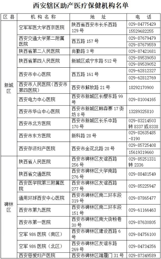 近期陕西省卫生健康委整理发布了西安辖区助产医疗保健机构名单(见下表),其他地市助产医疗保健机构名单由当地卫生健康部门自行发布。如有诊疗需求,请前往各助产医疗机构就诊。
