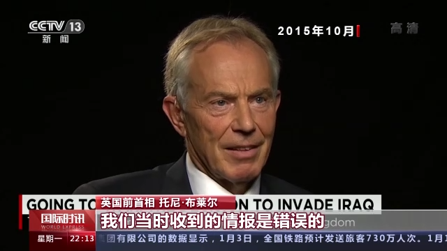 英国前首相 托尼·布莱尔:每当被问起这个,我可以说我们当时收到的情报是错误的,我对这一点感到抱歉。