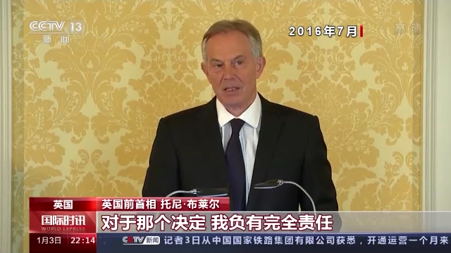 英国前首相 托尼·布莱尔:对于那个决定,我负有完全责任,没有例外,没有借口。