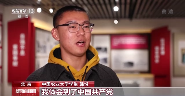 中国农业大学学生韩悦:在《领航》这首歌的歌词当中,我体会到了中国共产党如何在一百年奋斗历史中,带领全党全国各族人民实现了从站起来到富起来再到强起来,也深感我们青年学生肩上的责任十分重大,使命光荣。