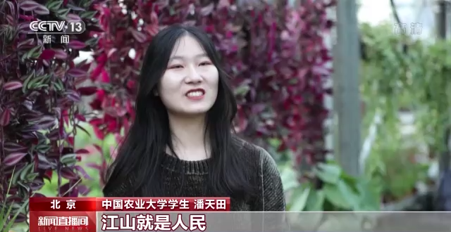 中国农业大学学生 潘天田:人民就是江山,江山就是人民,这句话我觉得写出了我们党以人为本的理念,全心全意为人民服务的宗旨。