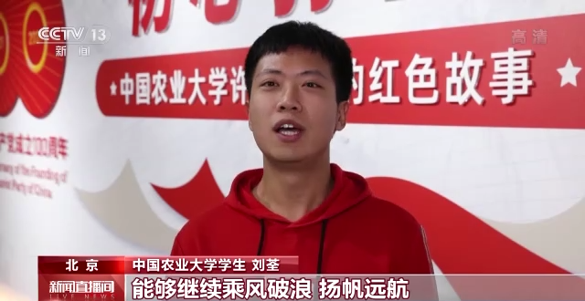 中国农业大学学生 刘荃:希望我们的国家在中国共产党的领航下能够继续乘风破浪、扬帆远航。