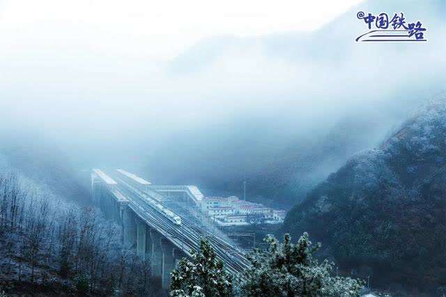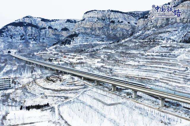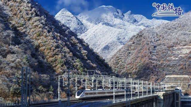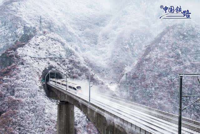 一列重联高铁动车组列车在白雪皑皑的崇山峻岭中驰骋。姜守凯 摄