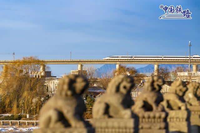 一列动车组列车驶过卢沟桥。宋道远 摄