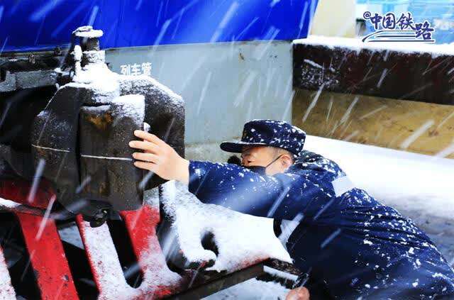 鹅毛大雪突降三晋大地,侯马北机务段职工奔赴机车整备作业现场。李立新 摄