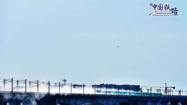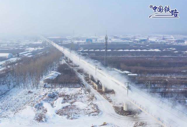 飞驰的复兴号动车组列车卷起千堆雪。吴向俊 摄