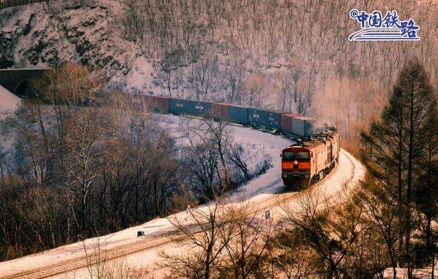 中欧班列在林海雪原中穿行。曲艺伟 摄